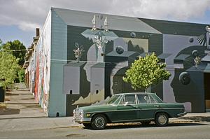 Mercedes W108 shot on Nikon 120ED Superzoom with Fujifilm Superia 400 in Portland, Oregon